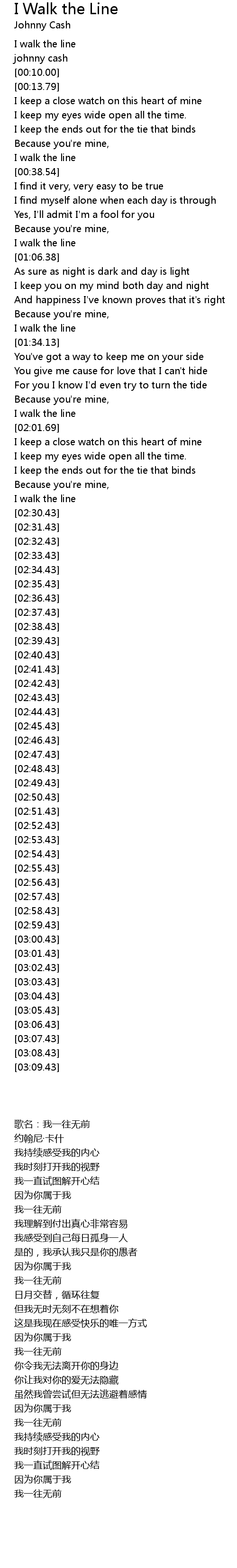 [00:00.00] I walk the line
