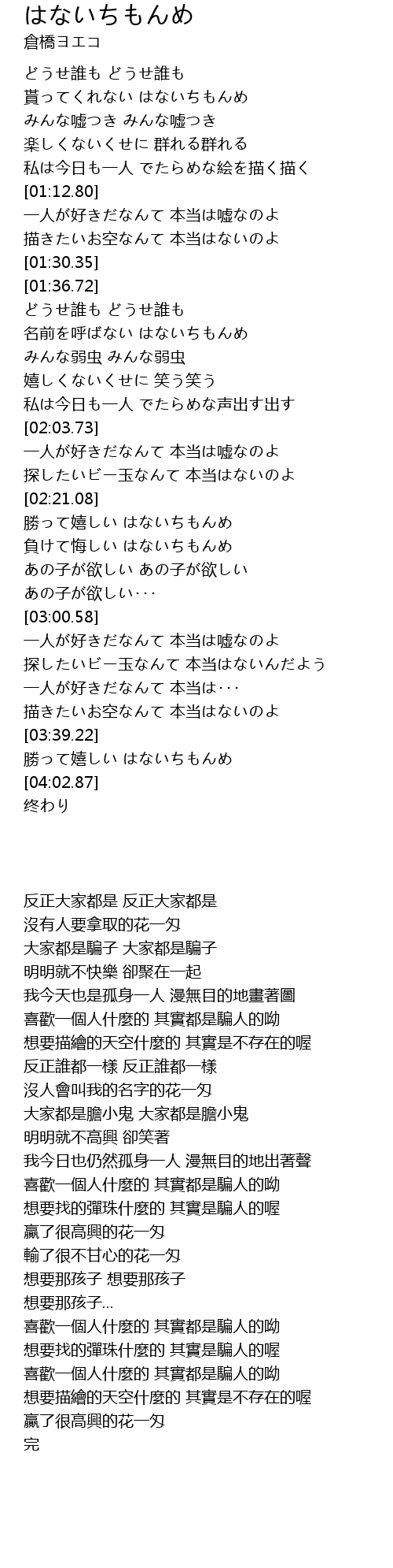 | [03:45.44] | 勝って嬉しい はないちもんめ |