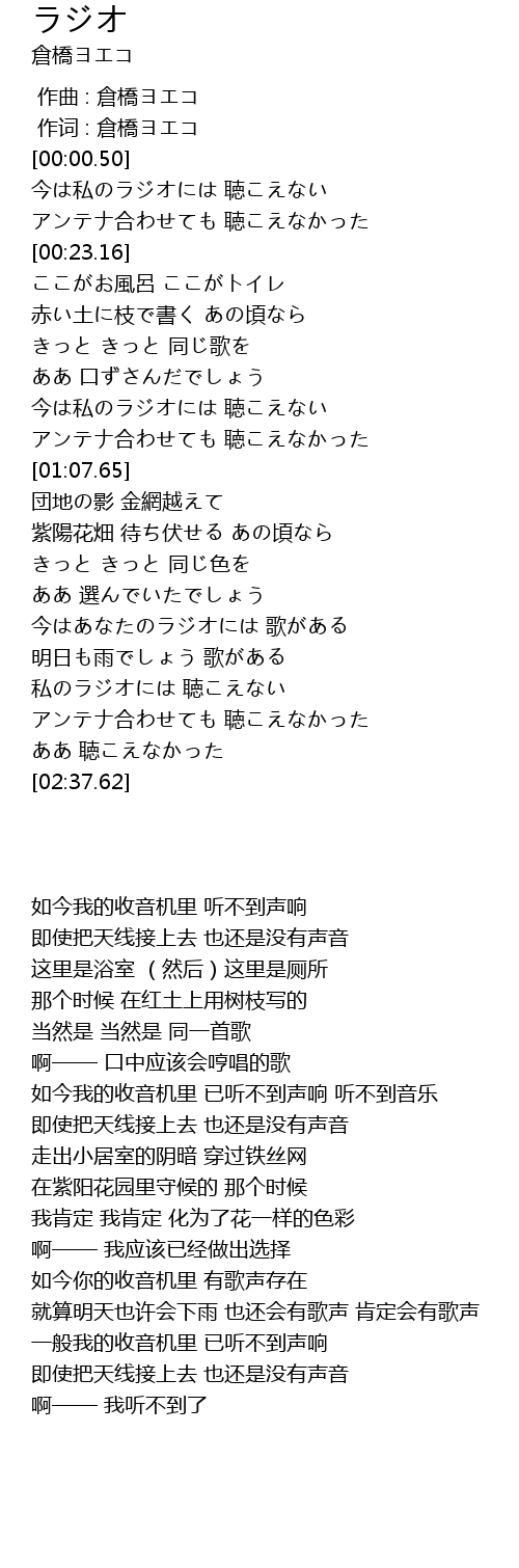 | [01:59.06] | 今はあなたのラジオには 歌がある |