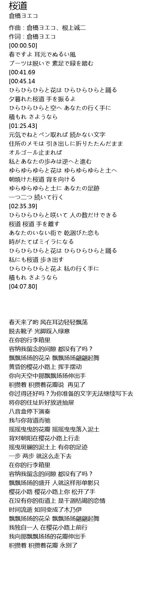 | [03:43.11] | 我独自一人 在樱花小路上前行 |