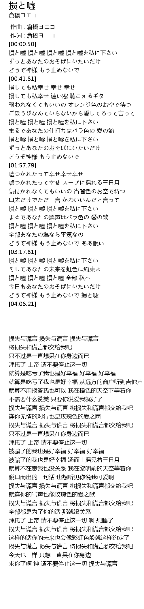 | [03:24.34] | 損と嘘 損と嘘 損と嘘を私に下さい |
