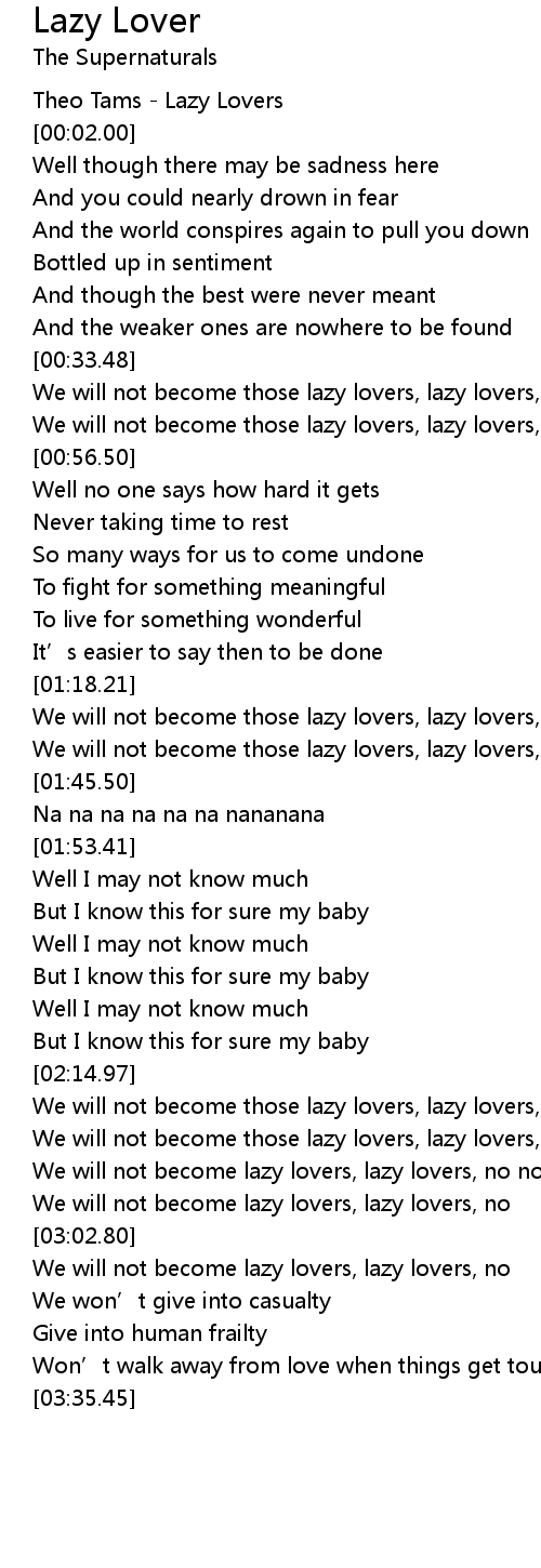 | [00:01.00] | Theo Tams Lazy Lovers |