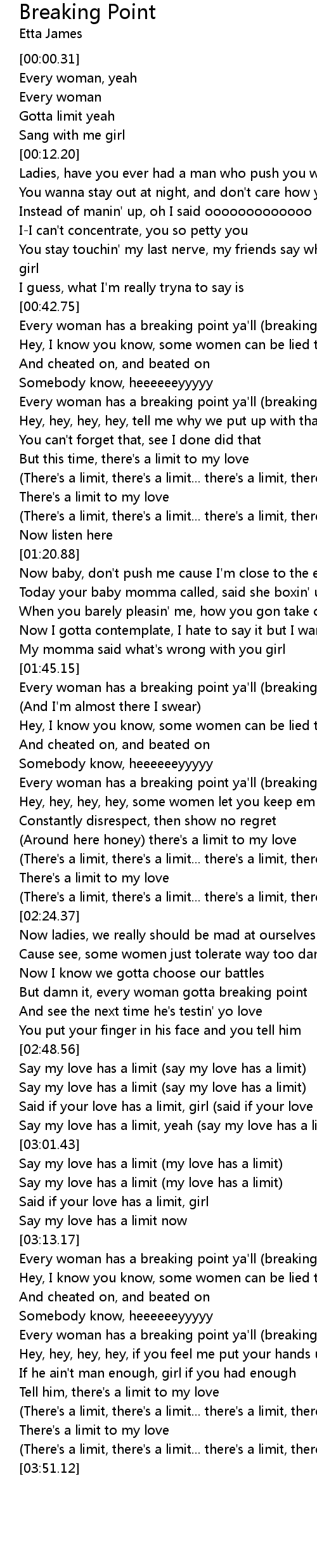 [00:56.01] Every woman has a breaking point ya'll (breaking point)