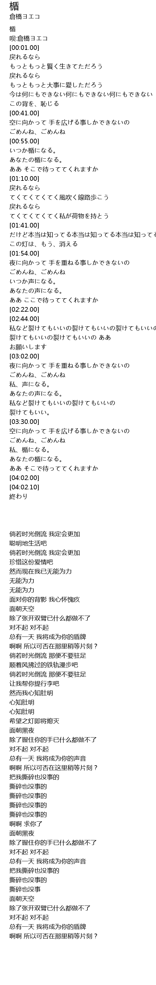 | [00:00.50] | 呗:倉橋ヨエコ |