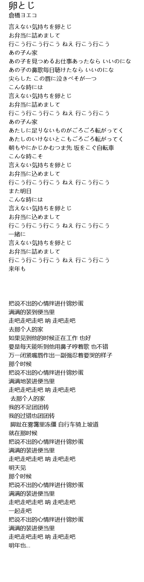 | [02:53.41] | 言えない気持ちを卵とじ |