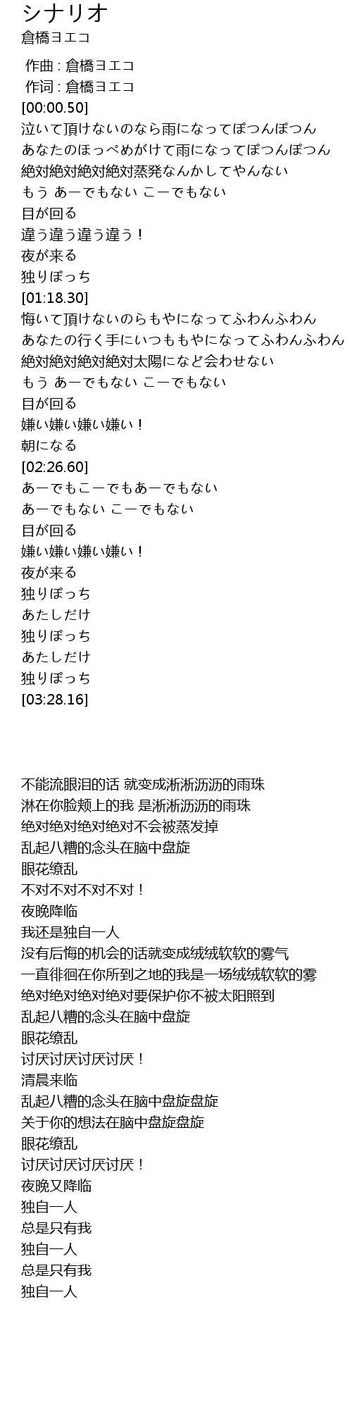 | [00:00.16] | 作词 : 倉橋ヨエコ |