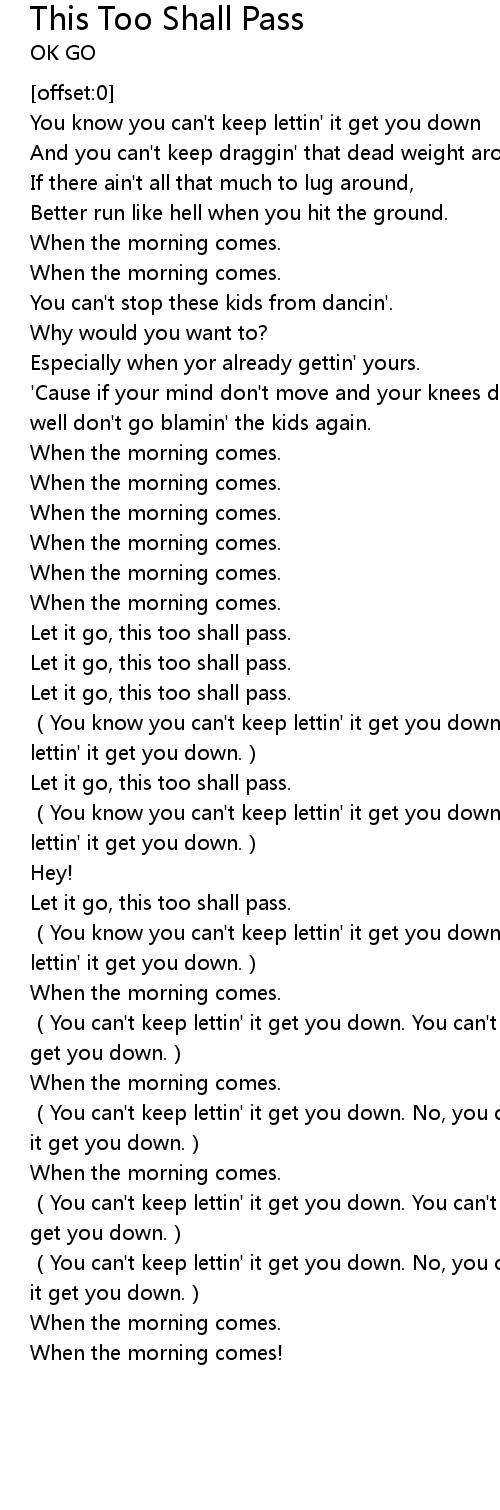 | [03:02.95] | You can' t keep lettin' it get you down. You can' t keep lettin' it get you down. |