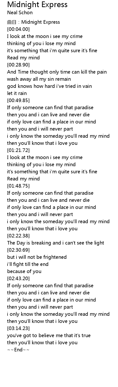 | [00:02.00] | qǔ mù: Midnight Express |