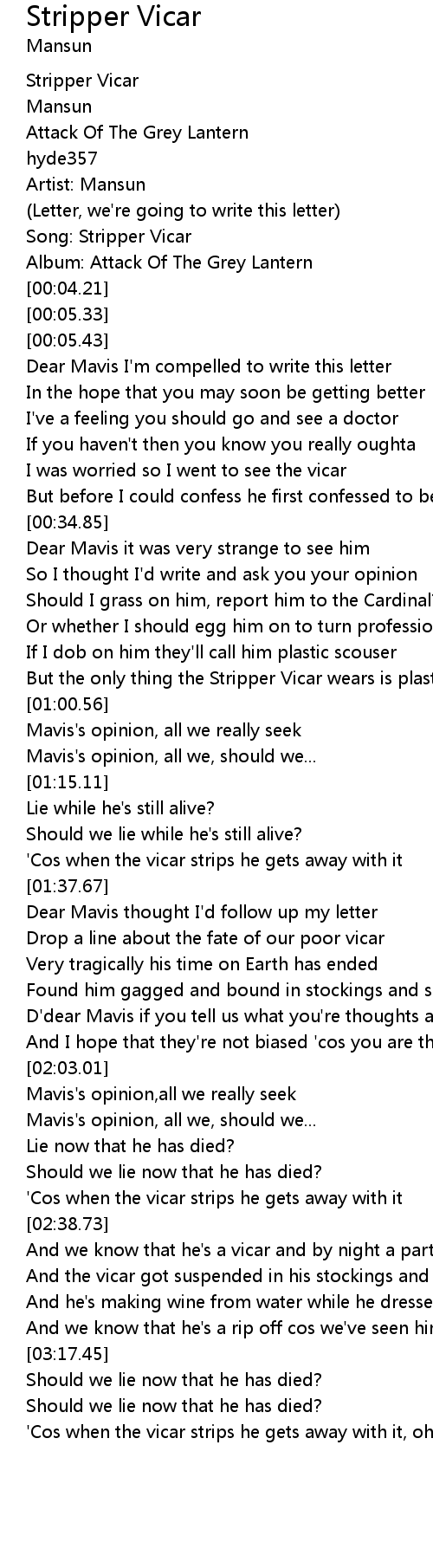 Song: Stripper Vicar |