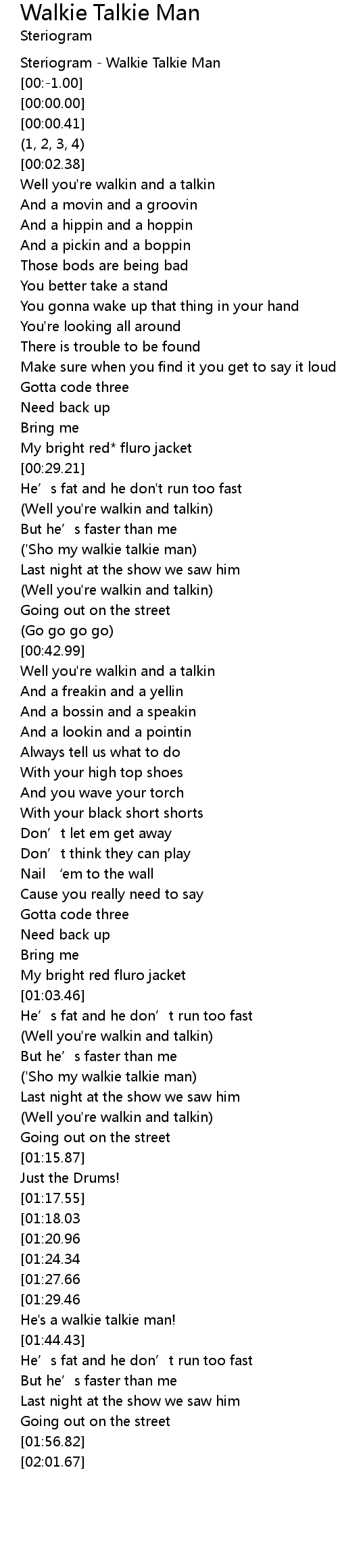 | [00:34.91] | ('Sho my walkie talkie man) |