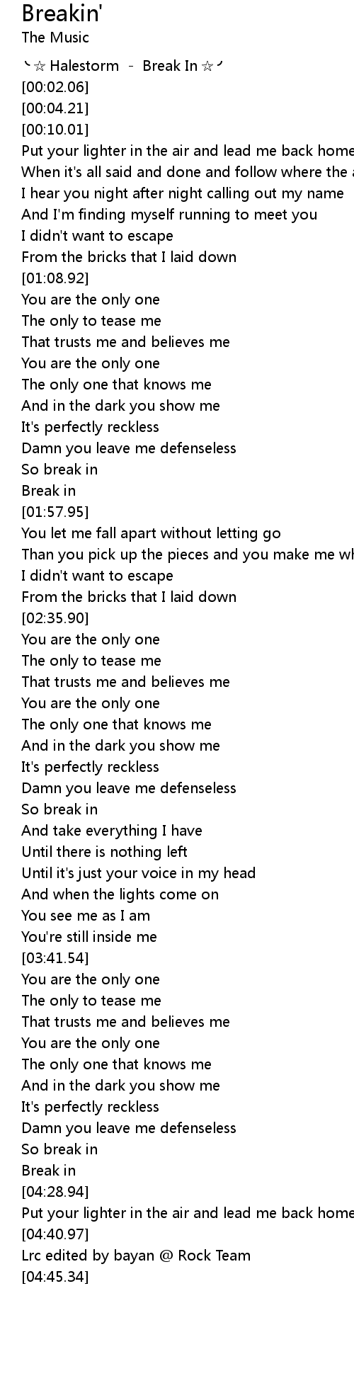 | [00:00.08] | ╰ ☆ Halestorm - Break In ☆ ╯ |