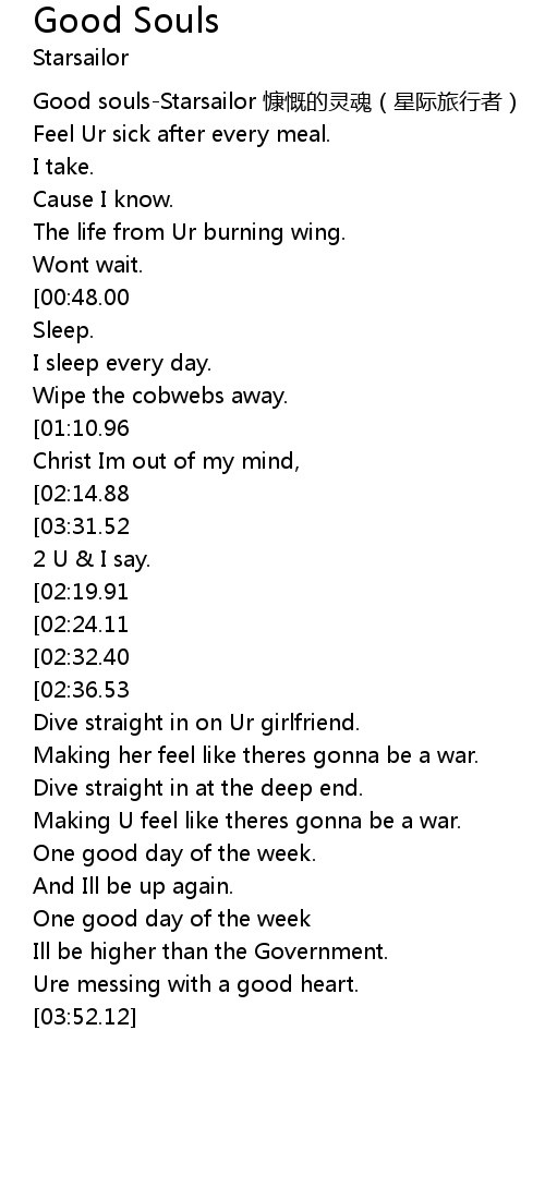 | [00:04.61] | Good souls-Starsailor 慷慨的灵魂(星际旅行者) |