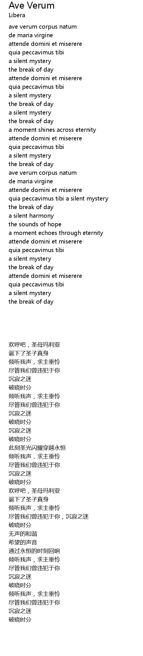 Ave Verum 歌词