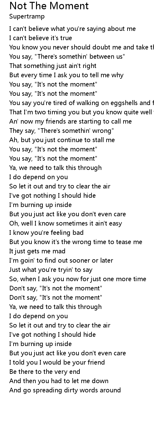 You say, "It's not the moment" |