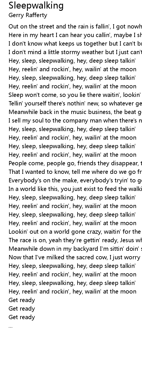 | Hey, sleep, sleepwalking, hey, deep sleep talkin' | |