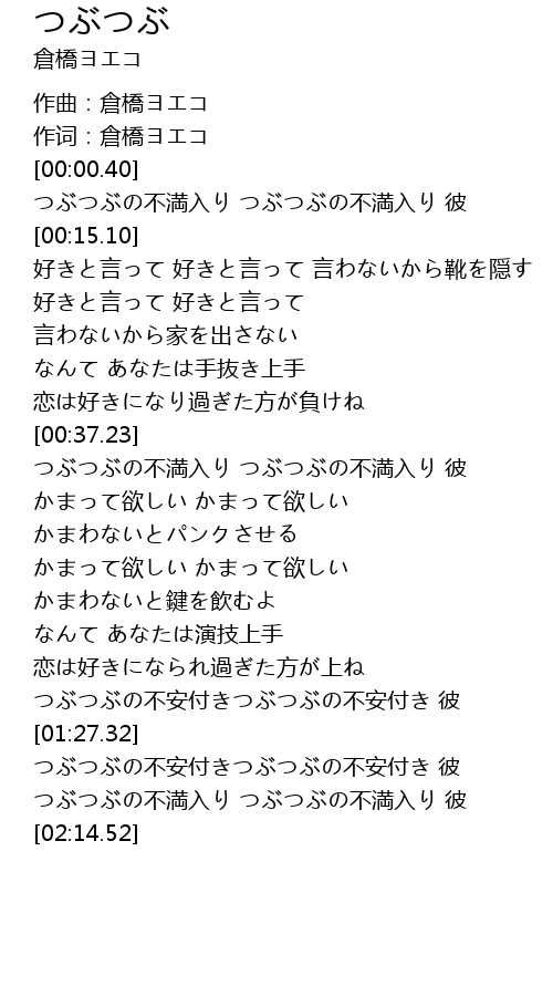 | [00:00.49] | つぶつぶの不満入り つぶつぶの不満入り 彼 |