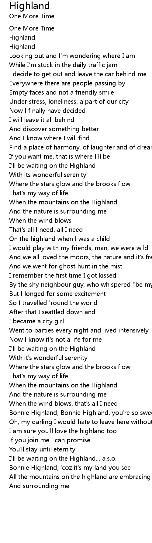 I'll be waiting on the Highland... a.s.o. |
