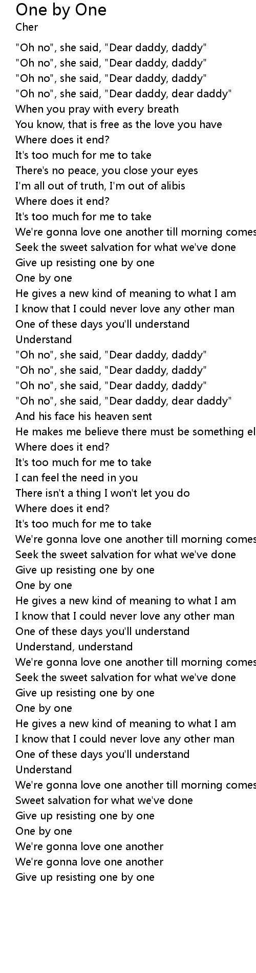 "Oh no", she said, "Dear daddy, daddy" |
