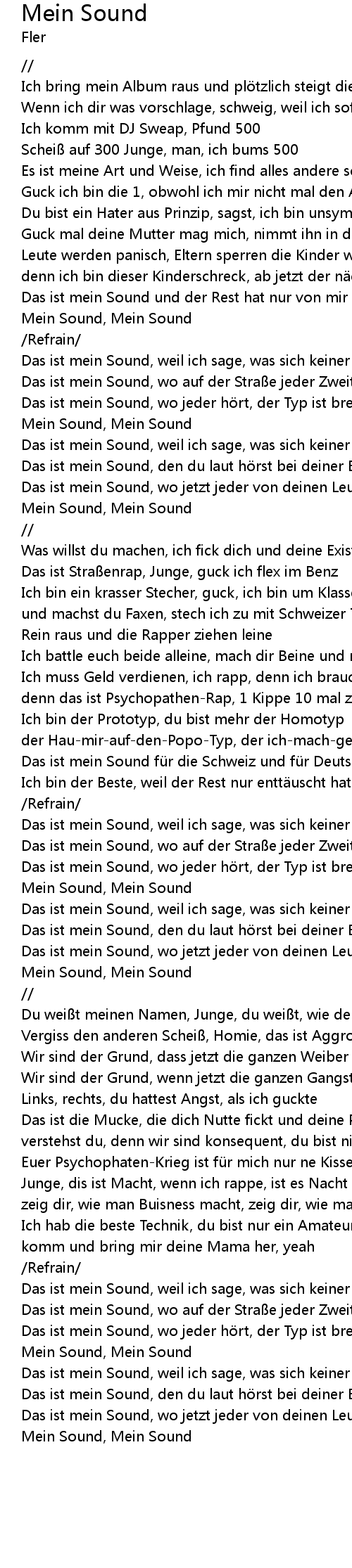 | Das ist mein Sound und der Rest hat nur von mir geklaut | |