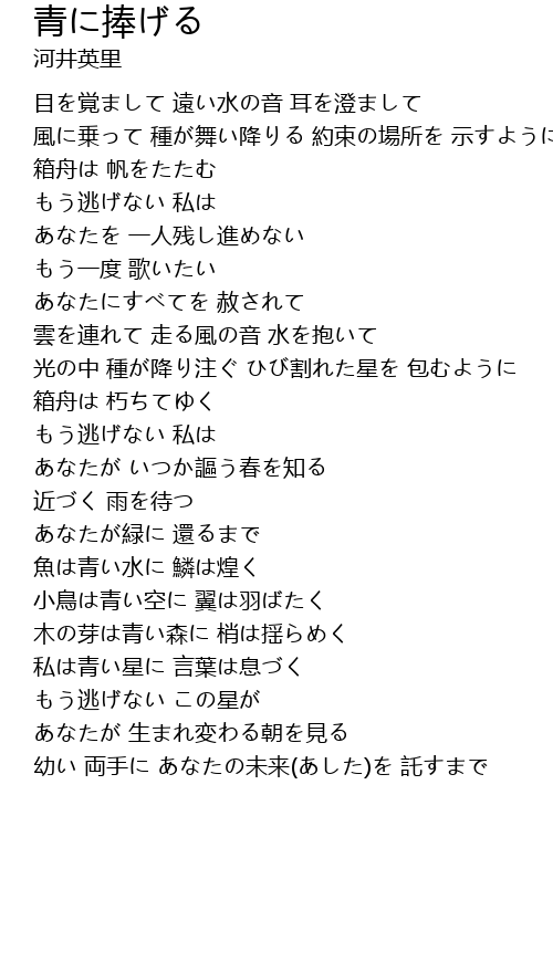 | 目を覚まして 遠い水の音 耳を澄まして | |