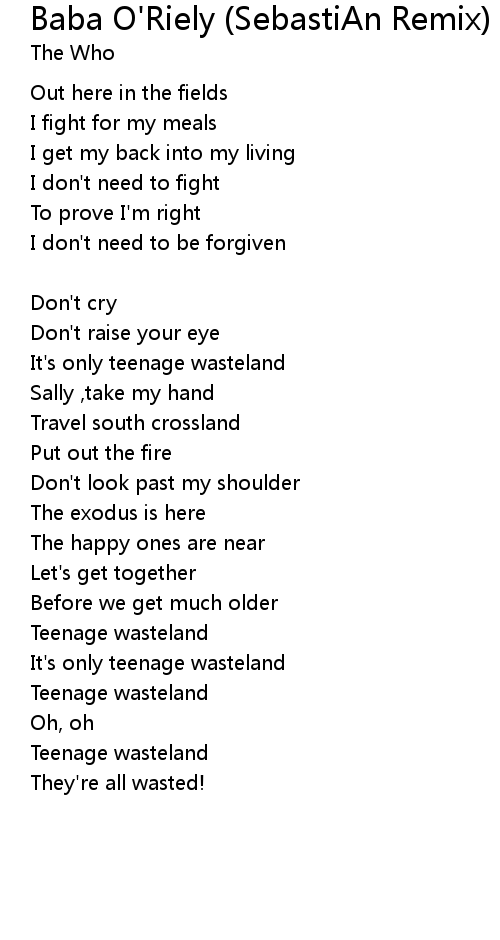 | It's only teenage wasteland | |