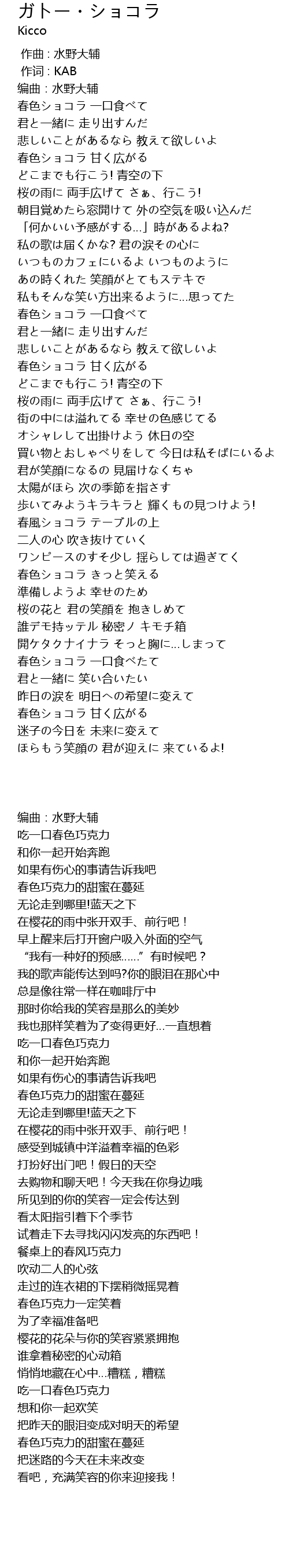 | [01:52.99] | 春色ショコラ 甘く広がる |