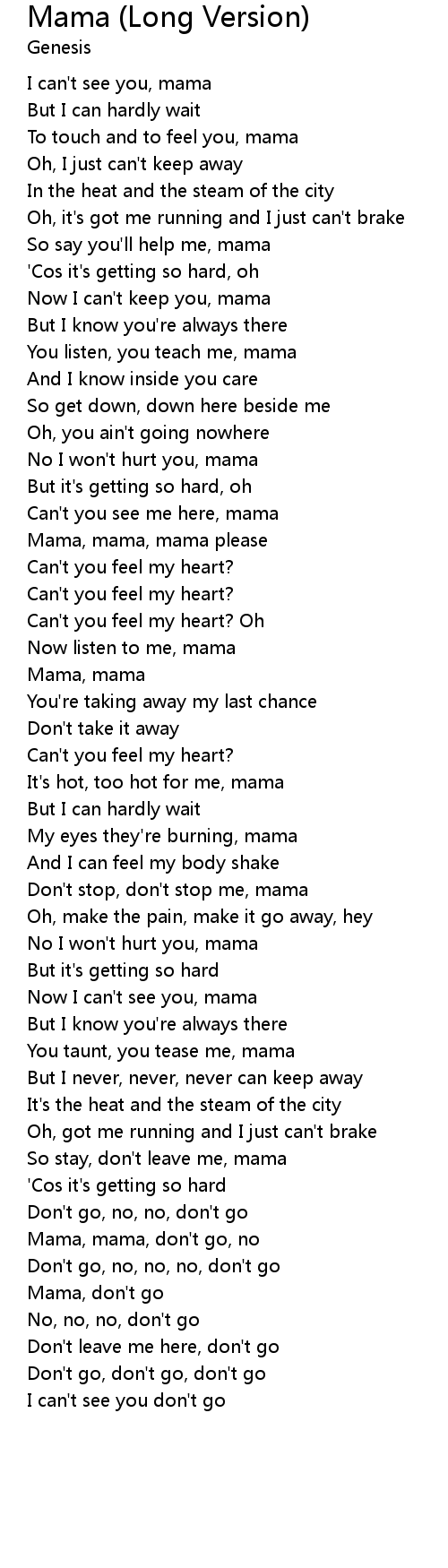 | Mama, mama, don't go, no | |