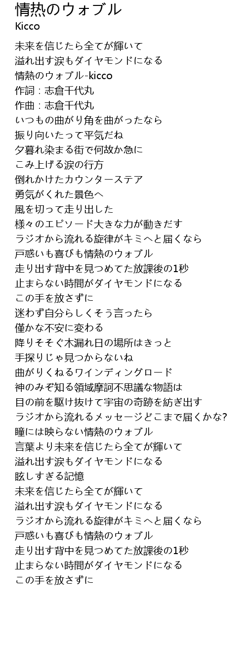 | [02:33.738] | 瞳には映らない情熱のウォブル |