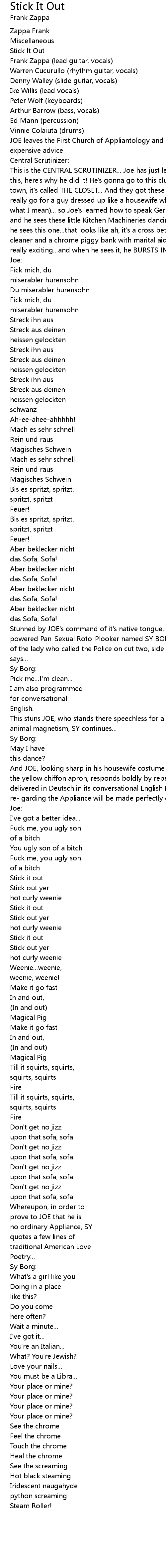Frank Zappa (lead guitar, vocals) |