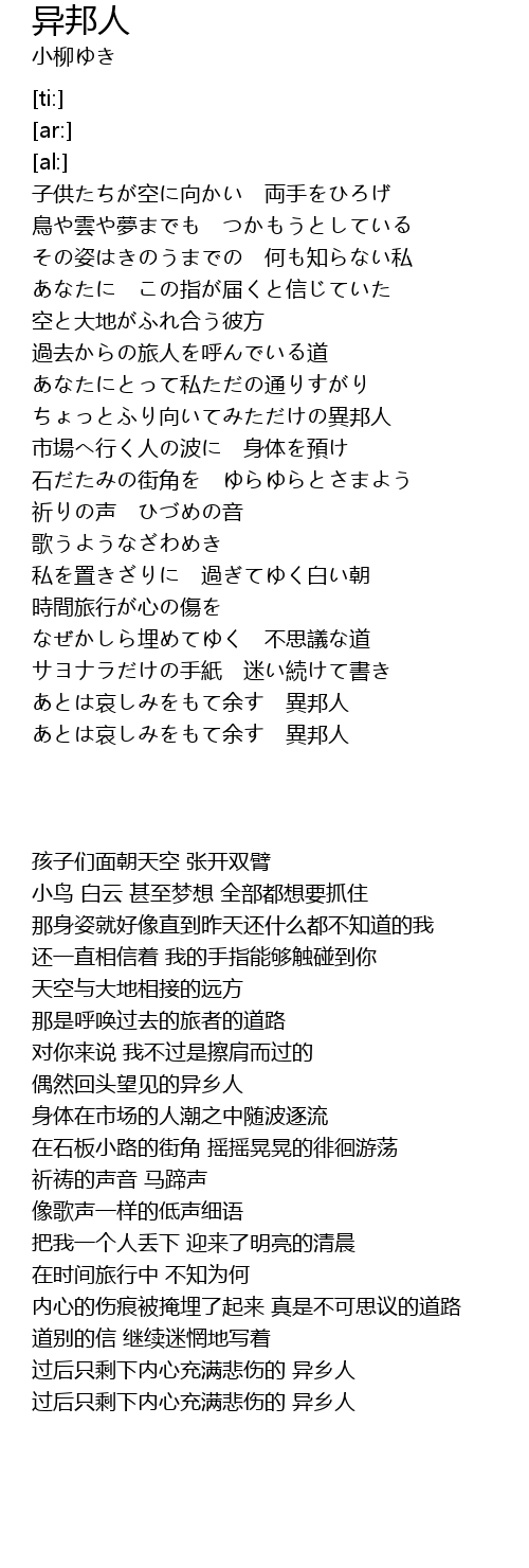 | 歌曲 | 异邦人 |