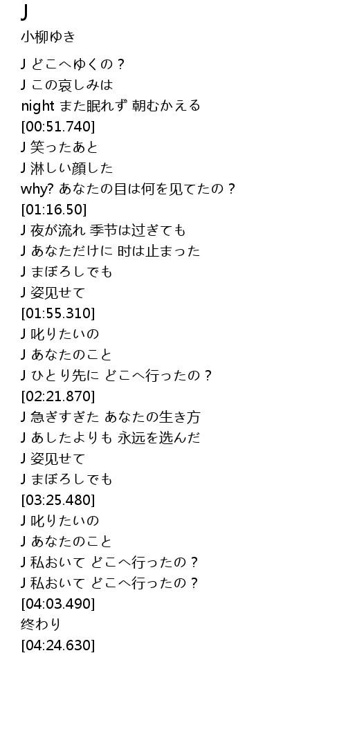 | [03:51.520] | J 私おいて どこへ行ったの? |