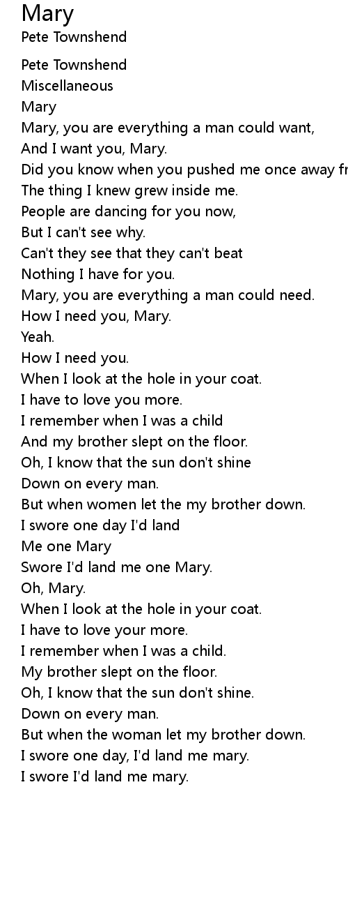 Mary 歌词