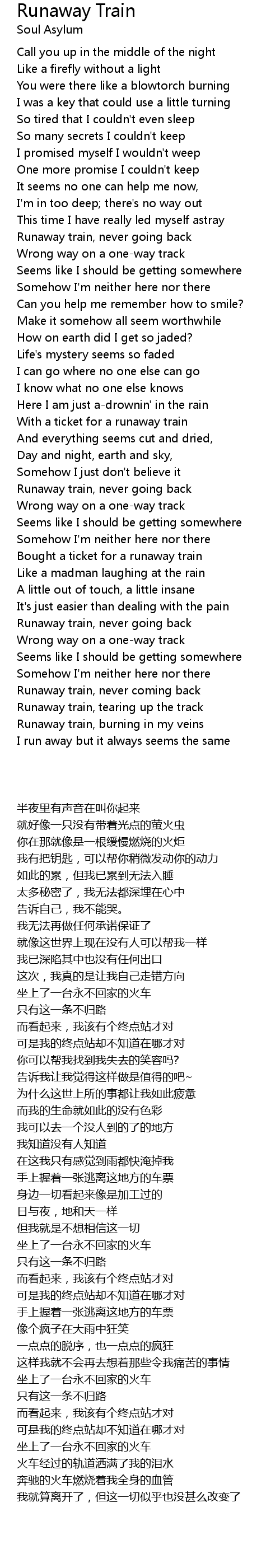 Runaway Train 歌词