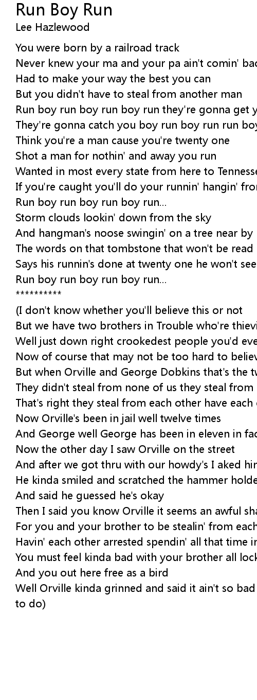 Run boy run boy run boy run they're gonna get you boy run boy run |