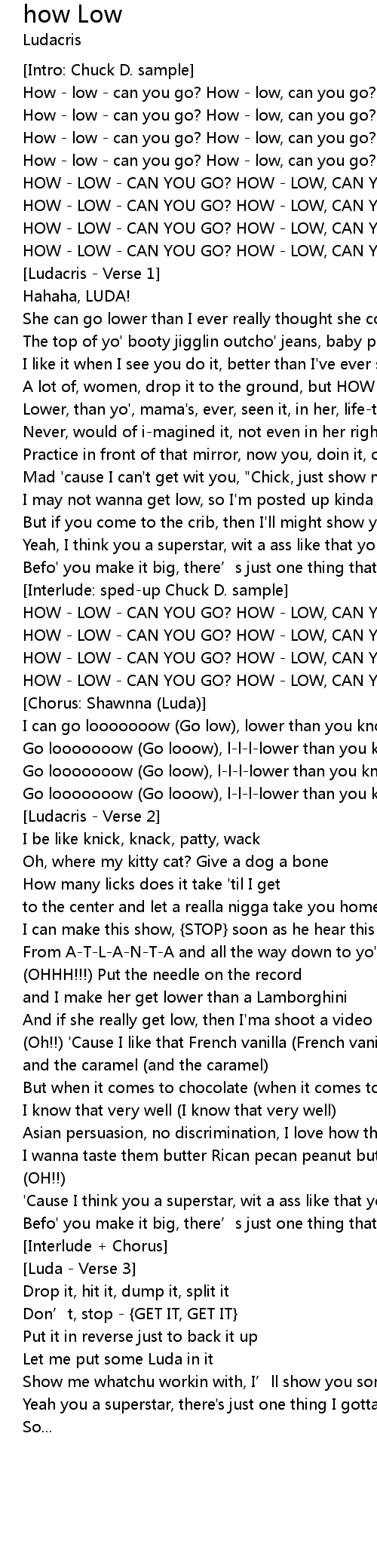 | Go looooooow (Go looow), l-l-l-lower than you know | |