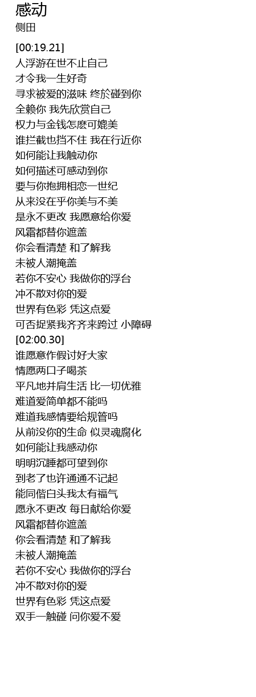 | [01:00.69] | 如何描述可感动到你 |