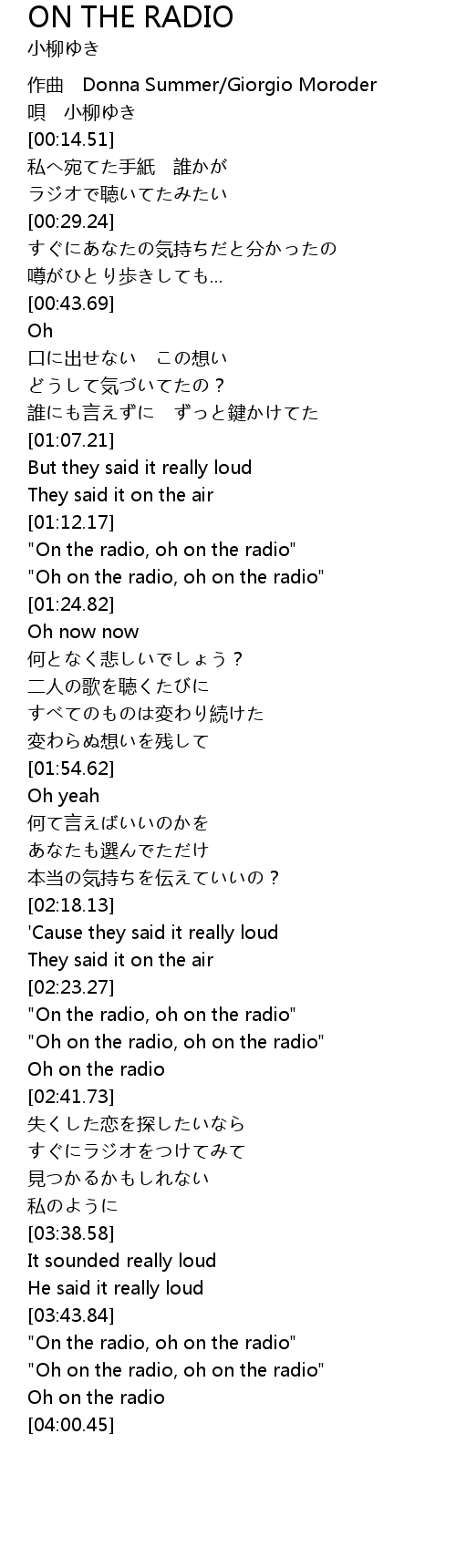 | [03:49.27] | "Oh on the radio, oh on the radio" |