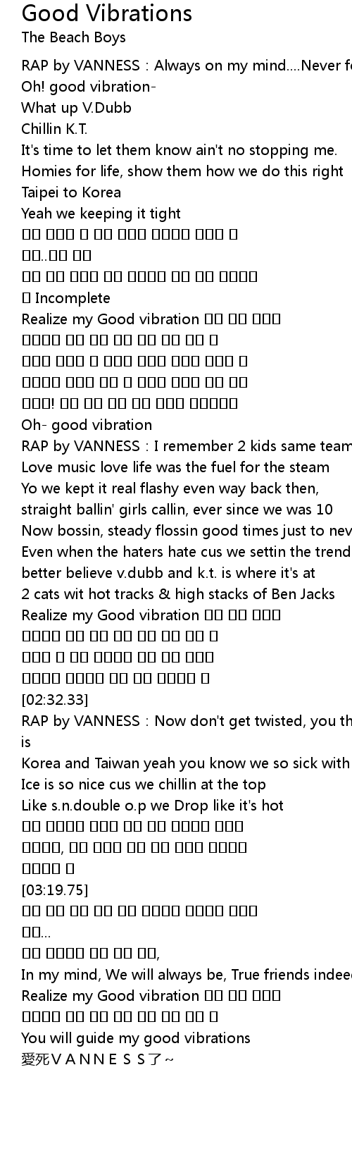 | [01:03.46] | Realize my Good vibration |