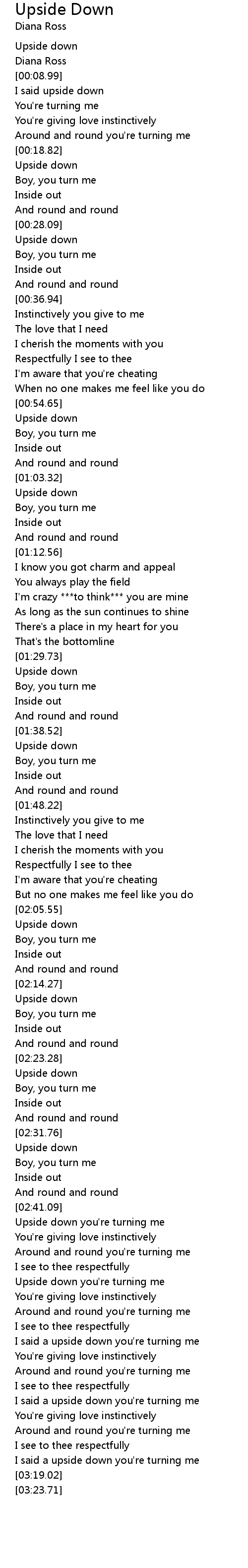 I said a upside down you're turning me |