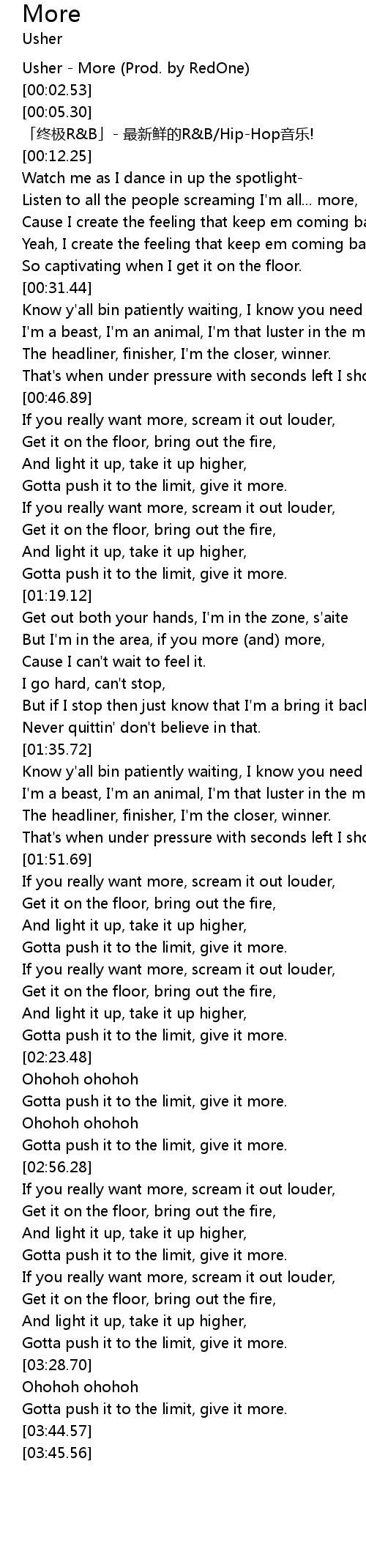 | [00:00.31] | Usher - More (Prod. by RedOne) |