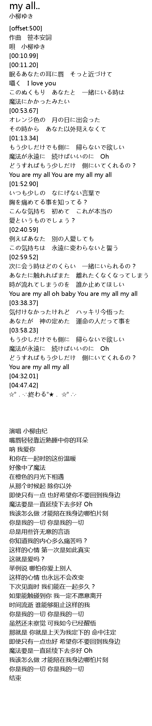 | [03:26.55] | You are my all oh baby You are my all my all |