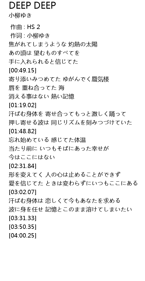 | [00:01.00] | 作词 : 小柳ゆき |