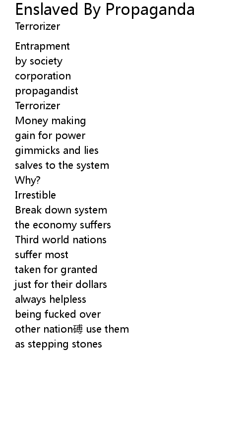 | 歌曲 | Enslaved By Propaganda |