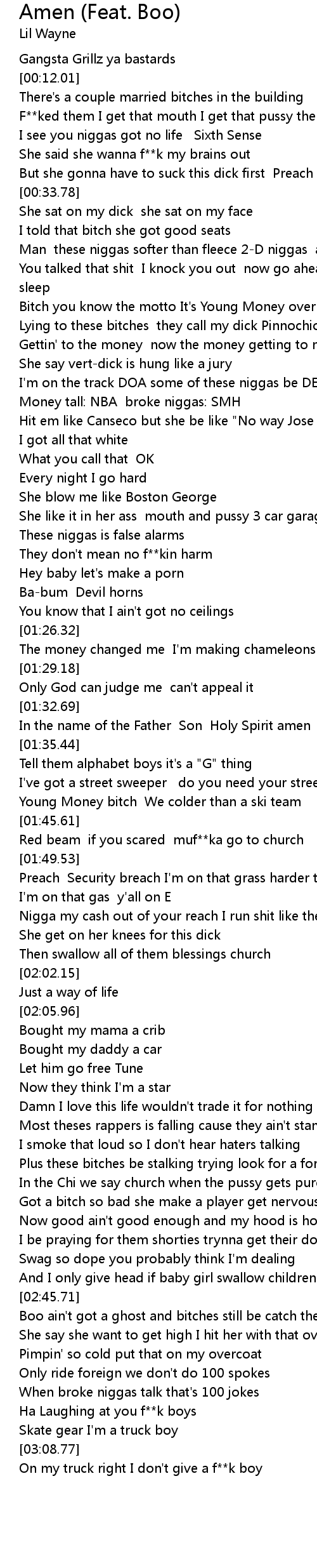 Boo ain't got a ghost and bitches still be catch the holy ghost |