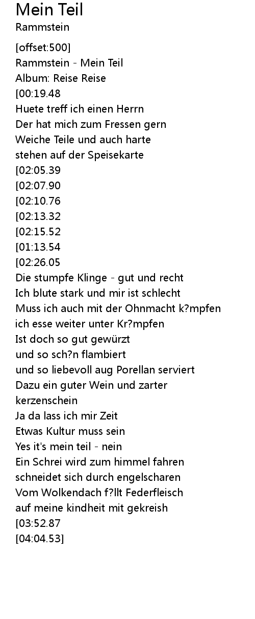 | [00:00.00] | Rammstein - Mein Teil |