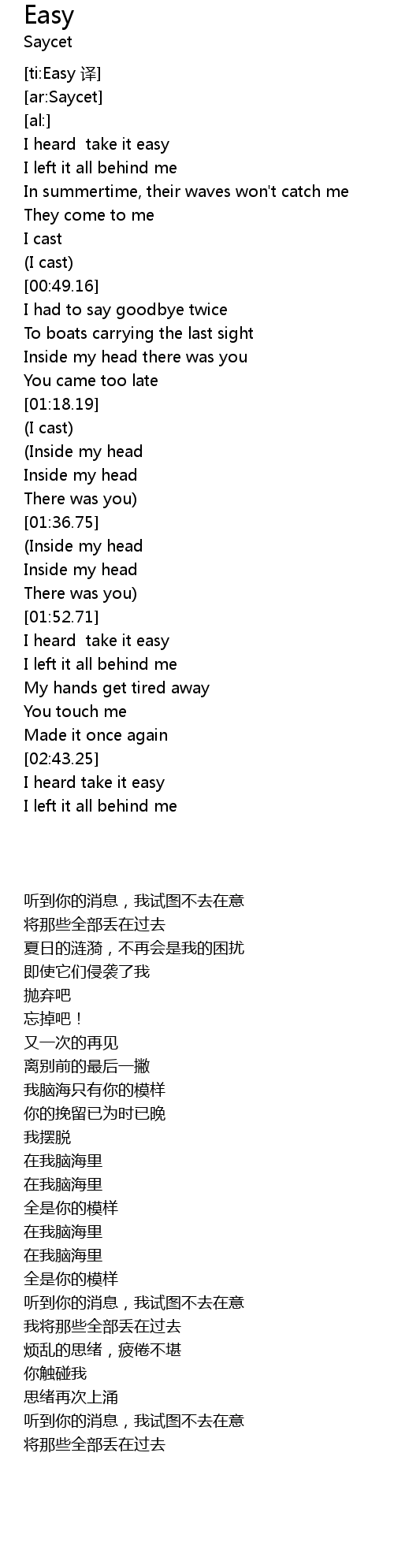 | [01:51.96] | I heard take it easy |