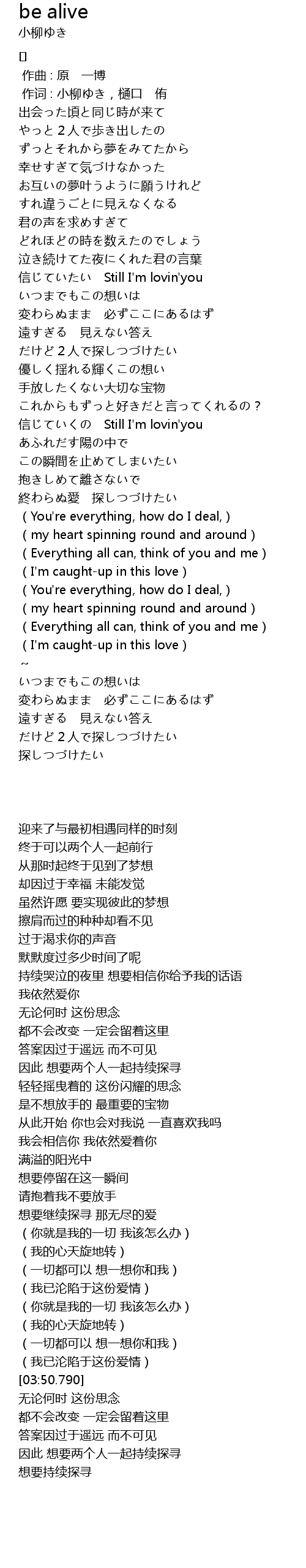 | [00:01.00] | 作词 : 小柳ゆき,樋口 侑 |