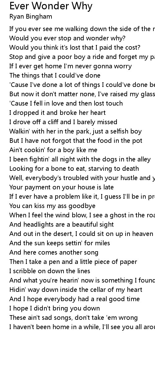 Would you ever stop and wonder why? |