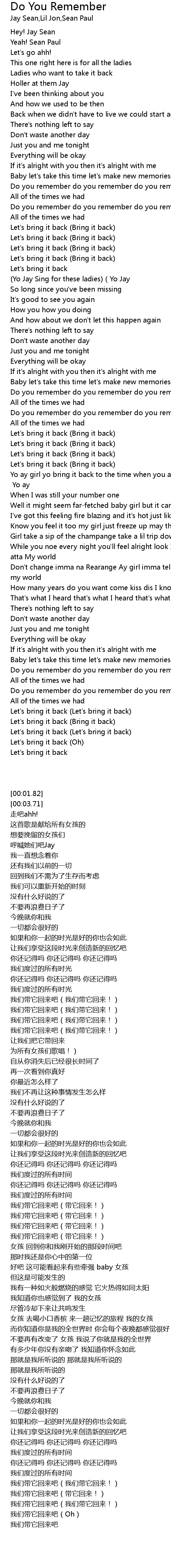 Do You Remember 歌词