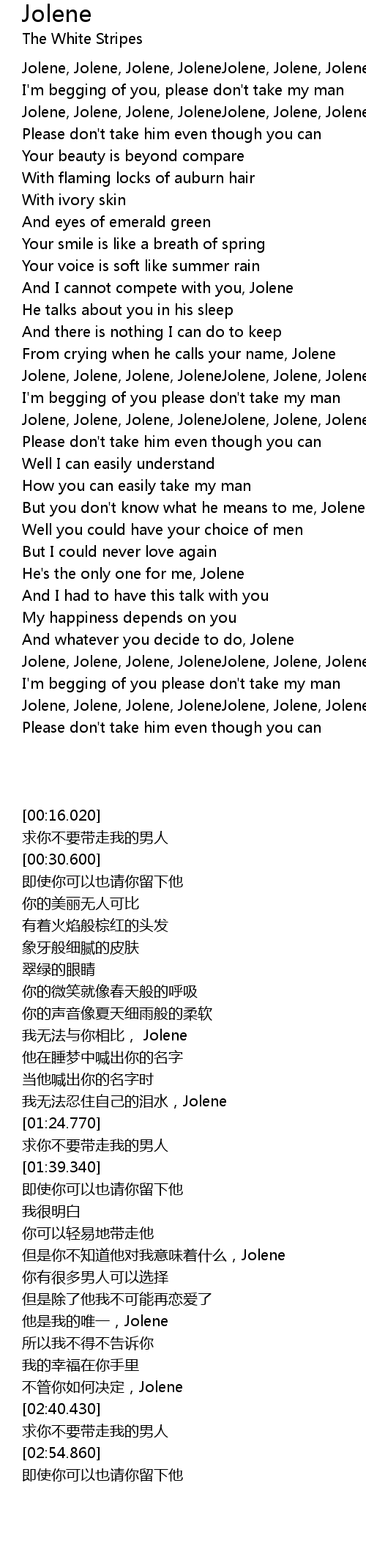 Jolene, Jolene, Jolene, JoleneJolene, Jolene, Jolene, Jolene |